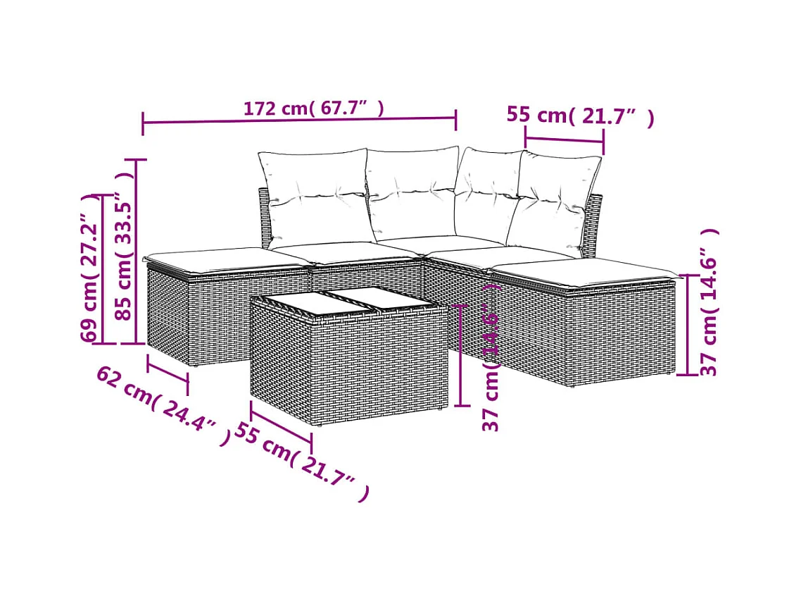 Conjunto de jardín - sofá 2+1+1 plazas