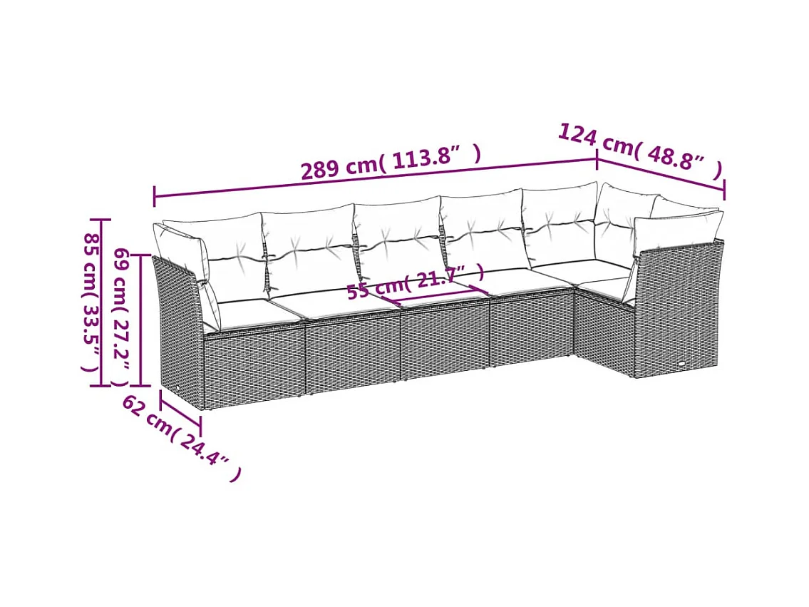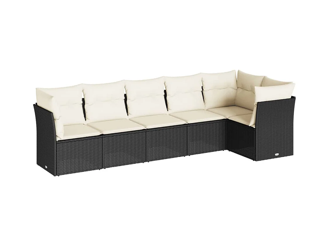 Set de sofás de jardín 6 piezas y cojines ratán sintético negro