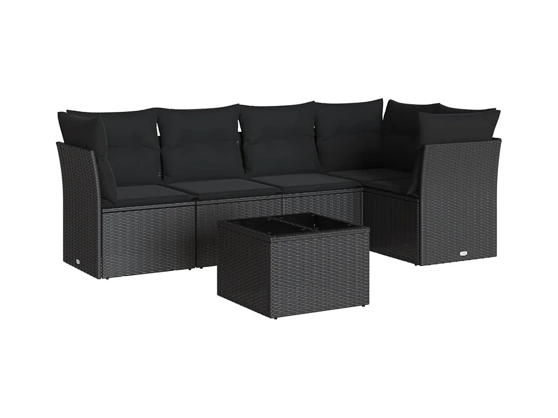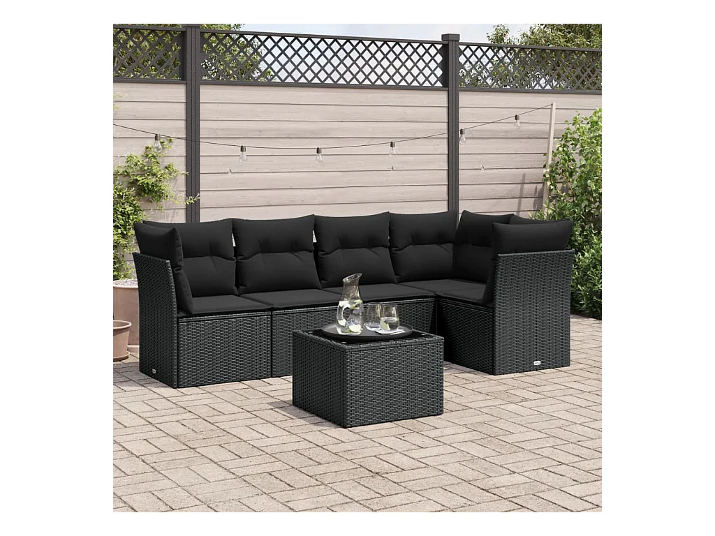 Set de sofás de jardín 6 piezas y cojines ratán sintético negro