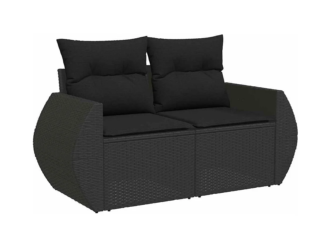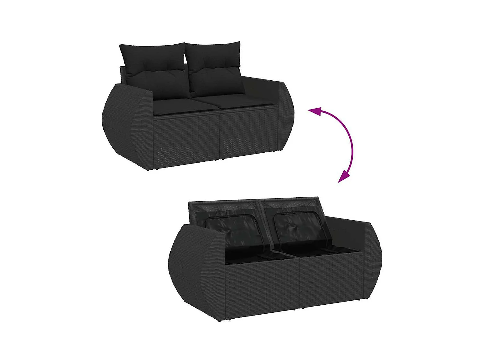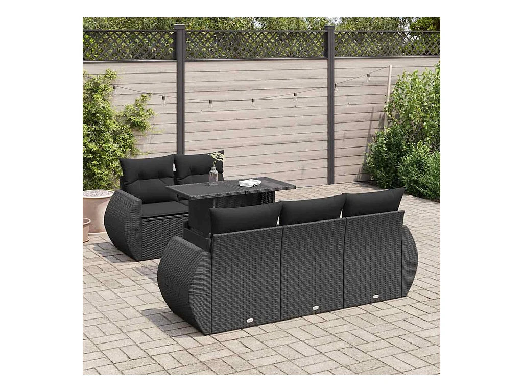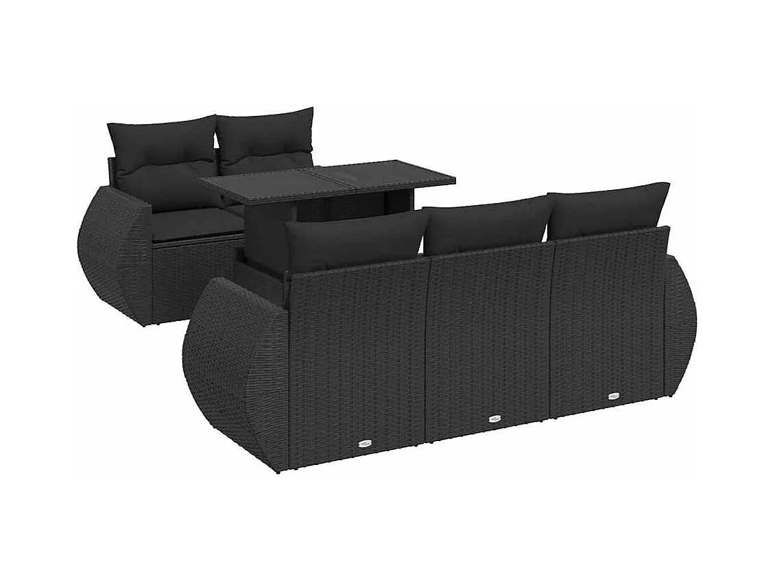 Set de sofás de jardín 6 piezas y cojines ratán sintético negro