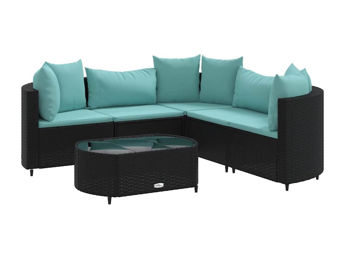 Set de muebles de jardín 5 piezas y cojines ratán sintético negro