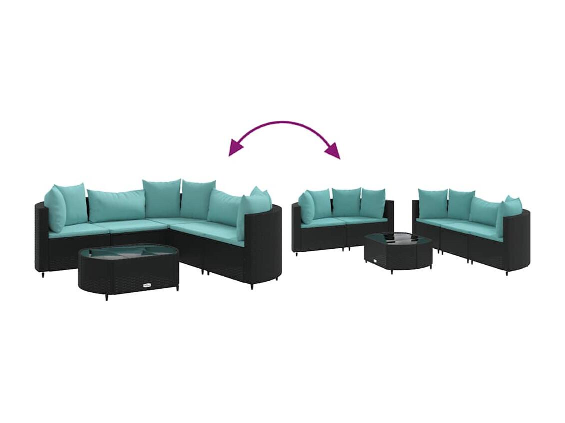 Set de sofás de jardín 6 piezas y cojines ratán sintético negro