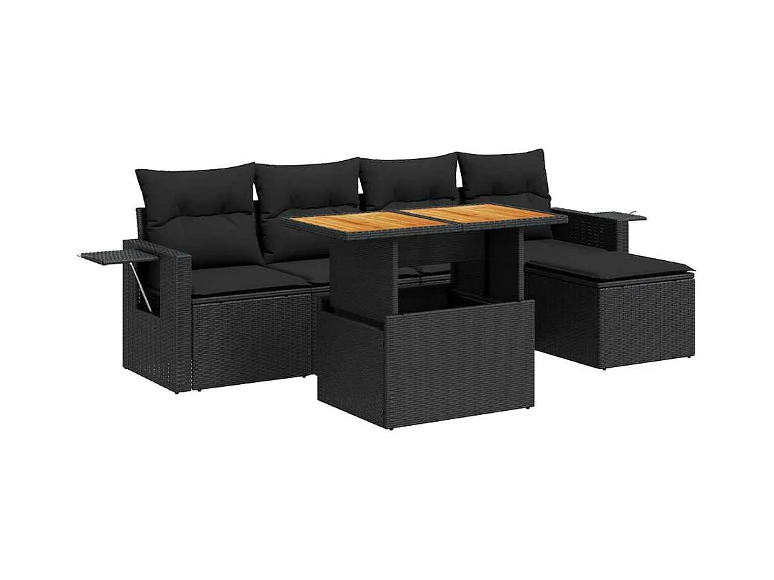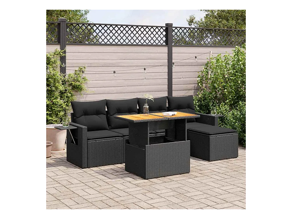 Set sofás jardín y cojines 6 piezas ratán sintético acacia negro