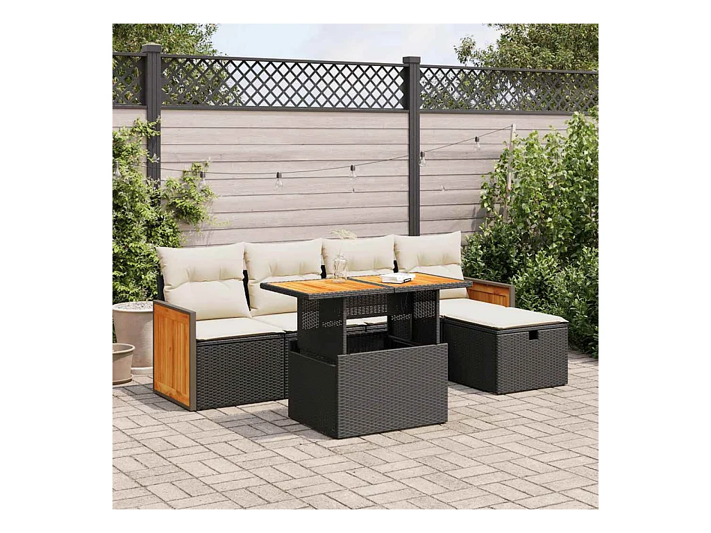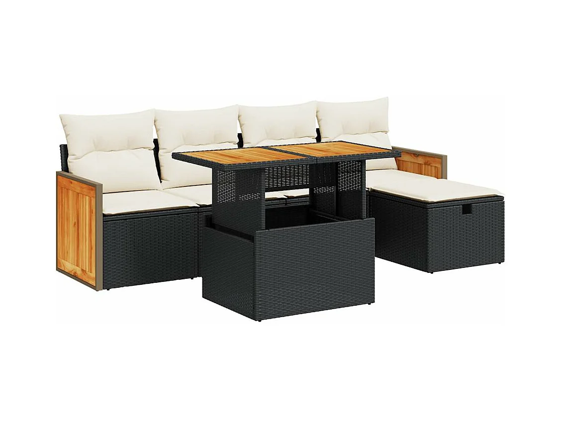 Set de sofás de jardín 6 piezas y cojines ratán sintético negro