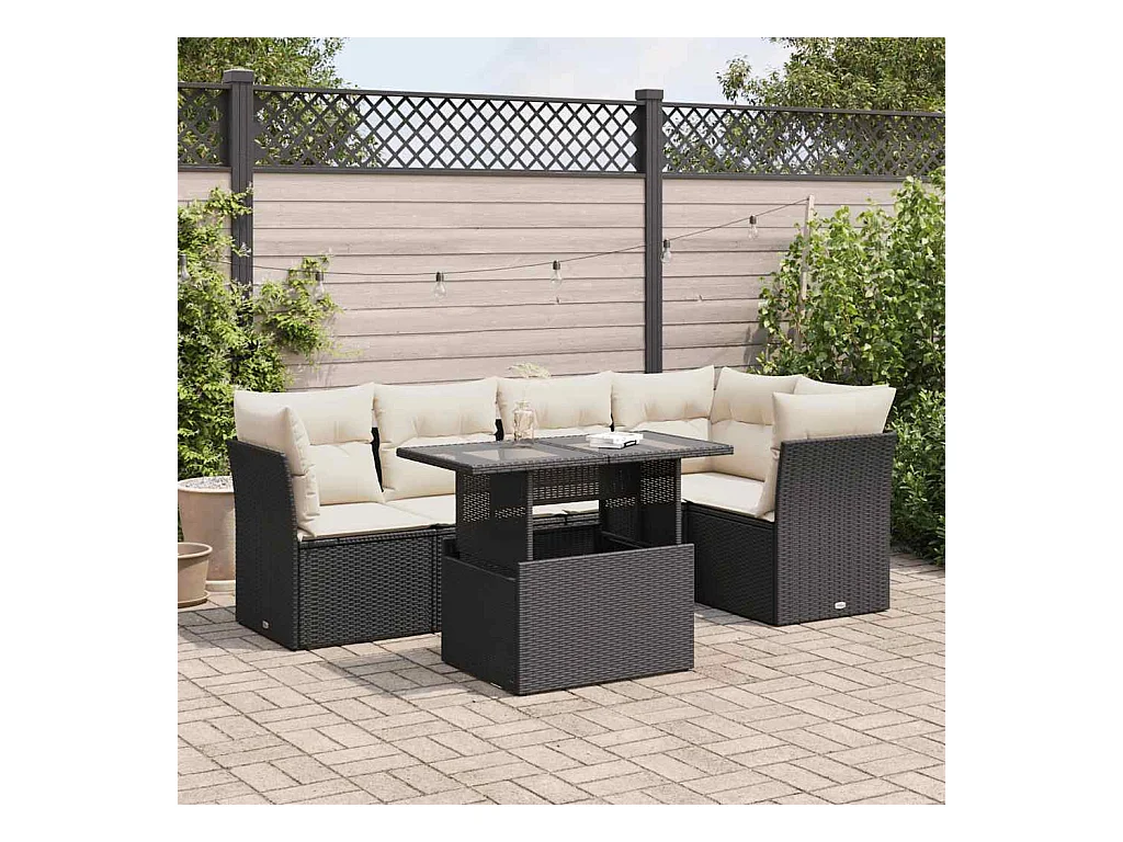 Set de sofás de jardín 6 piezas y cojines ratán sintético negro