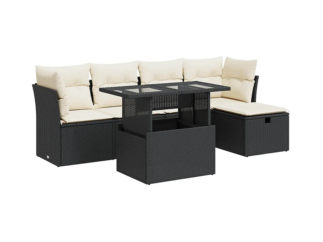 Set de sofás de jardín 6 piezas y cojines ratán sintético negro