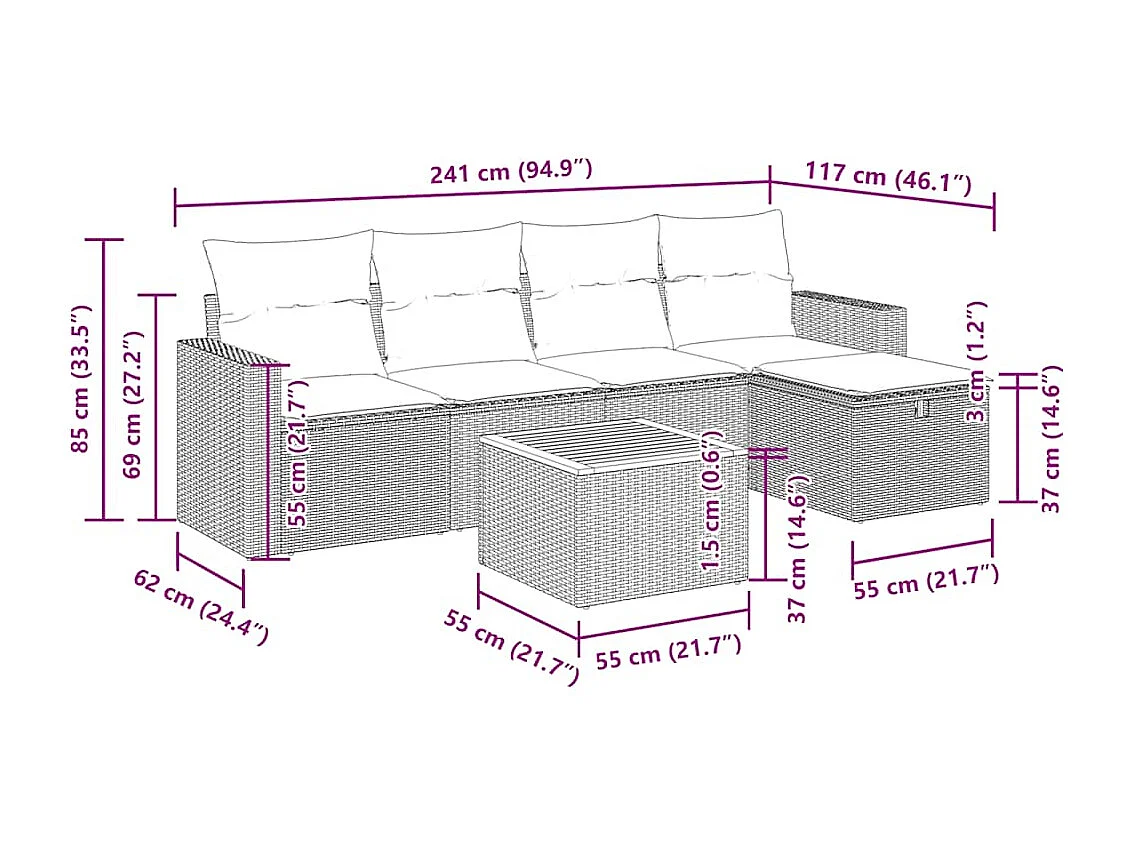 Set de sofás de jardín 6 piezas y cojines ratán sintético negro