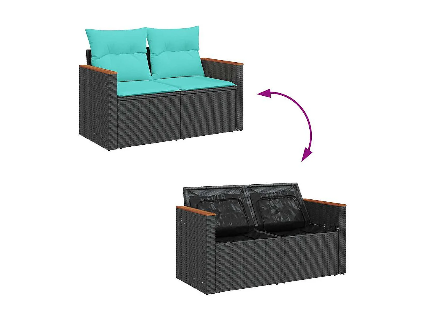 Set de sofás de jardín 6 piezas y cojines ratán sintético negro