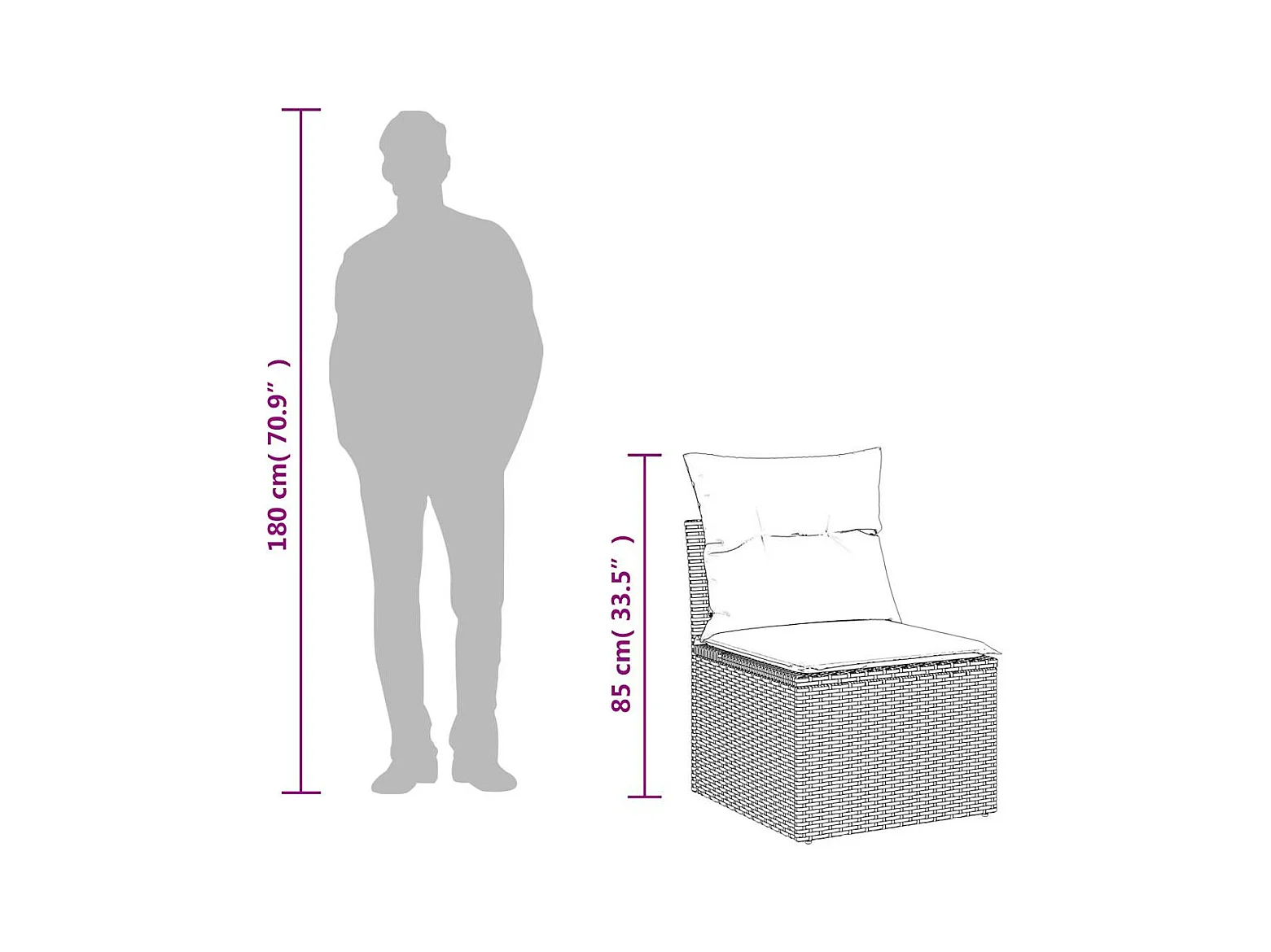 Muebles de jardín de 6 piezas con cojines de resina tejida en gris claro.