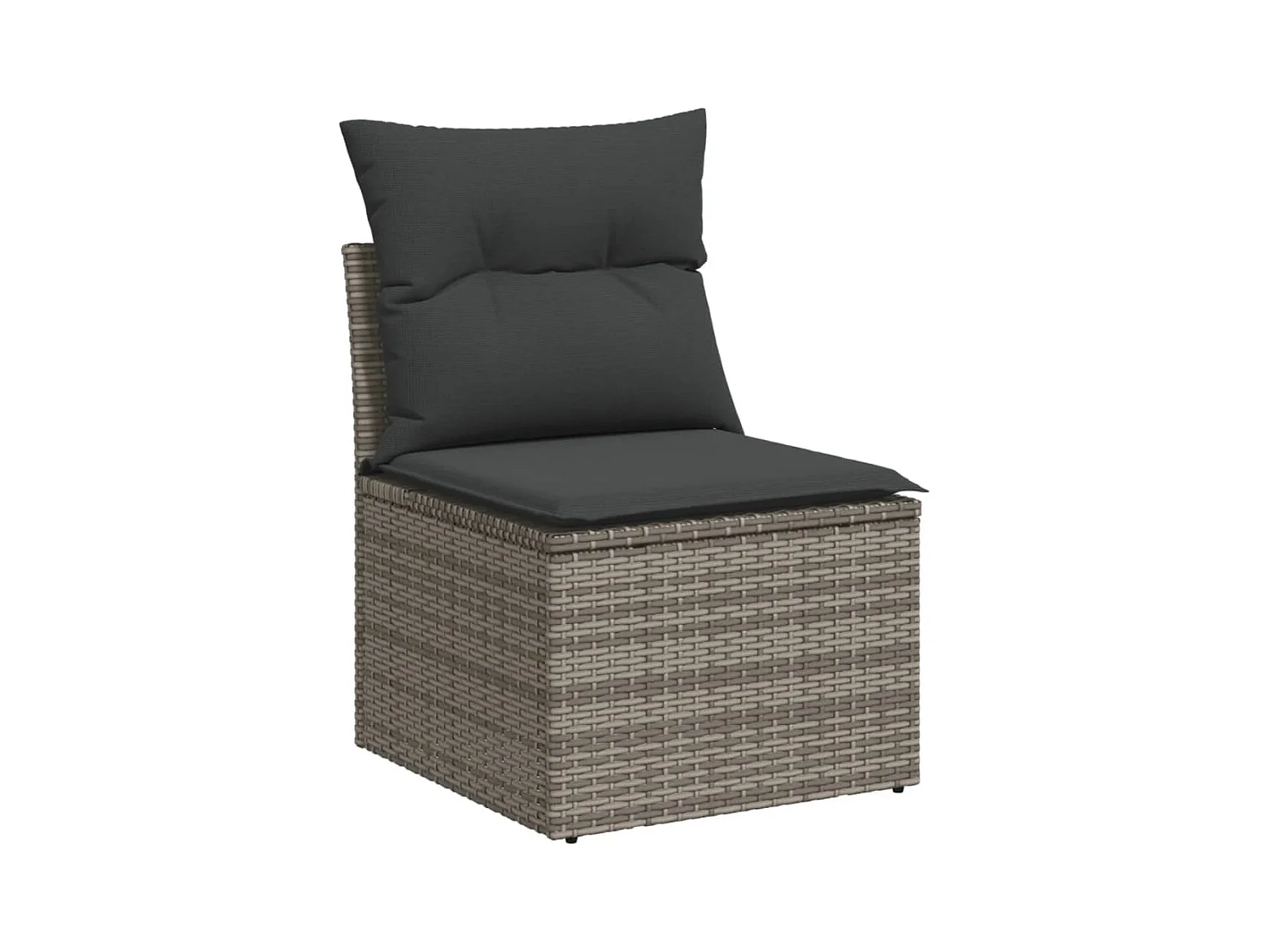 Muebles de jardín de 9 piezas con cojines de resina tejida gris.