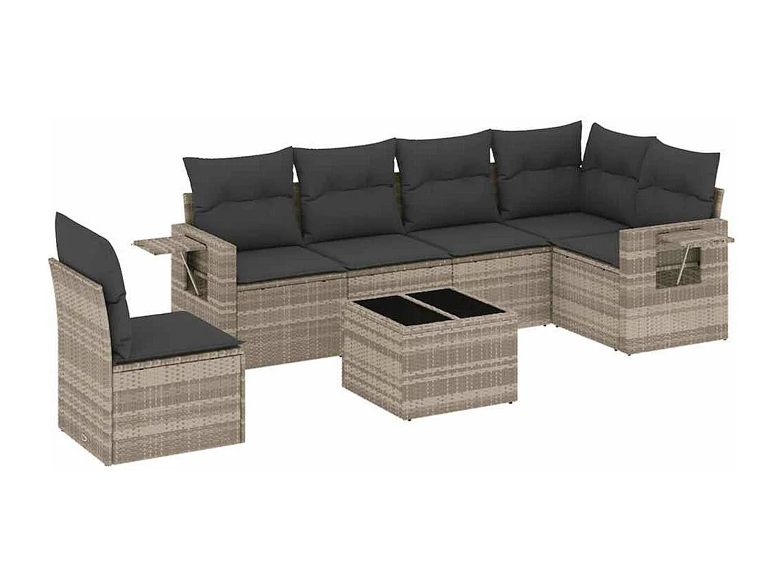Set de sofás de jardín 7 piezas con cojines ratán PE gris claro
