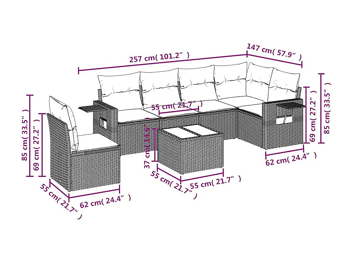 Set de sofás de jardín 8 piezas y cojines ratán sintético gris