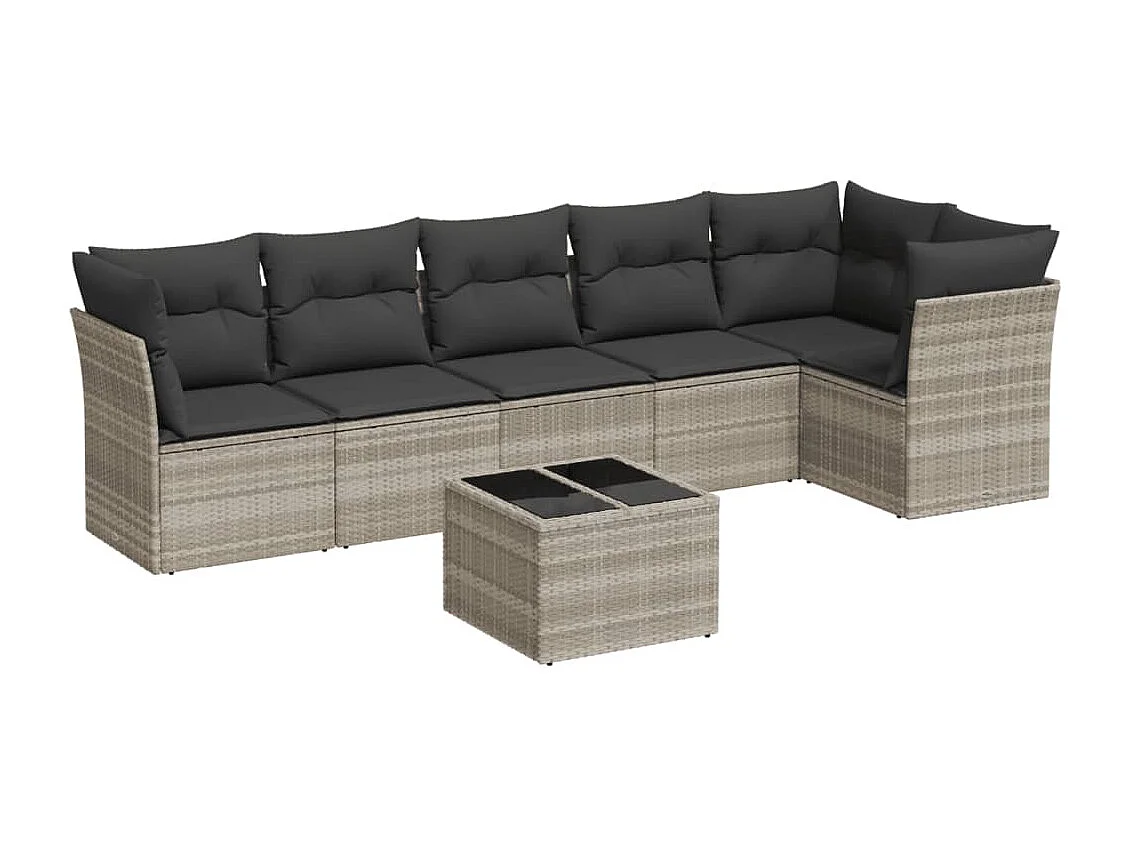 Set de sofás de jardín 7 piezas con cojines ratán PE gris claro