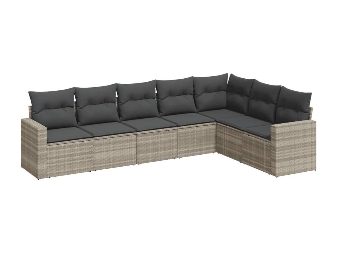 Set de sofás de jardín 7 piezas con cojines ratán PE gris claro