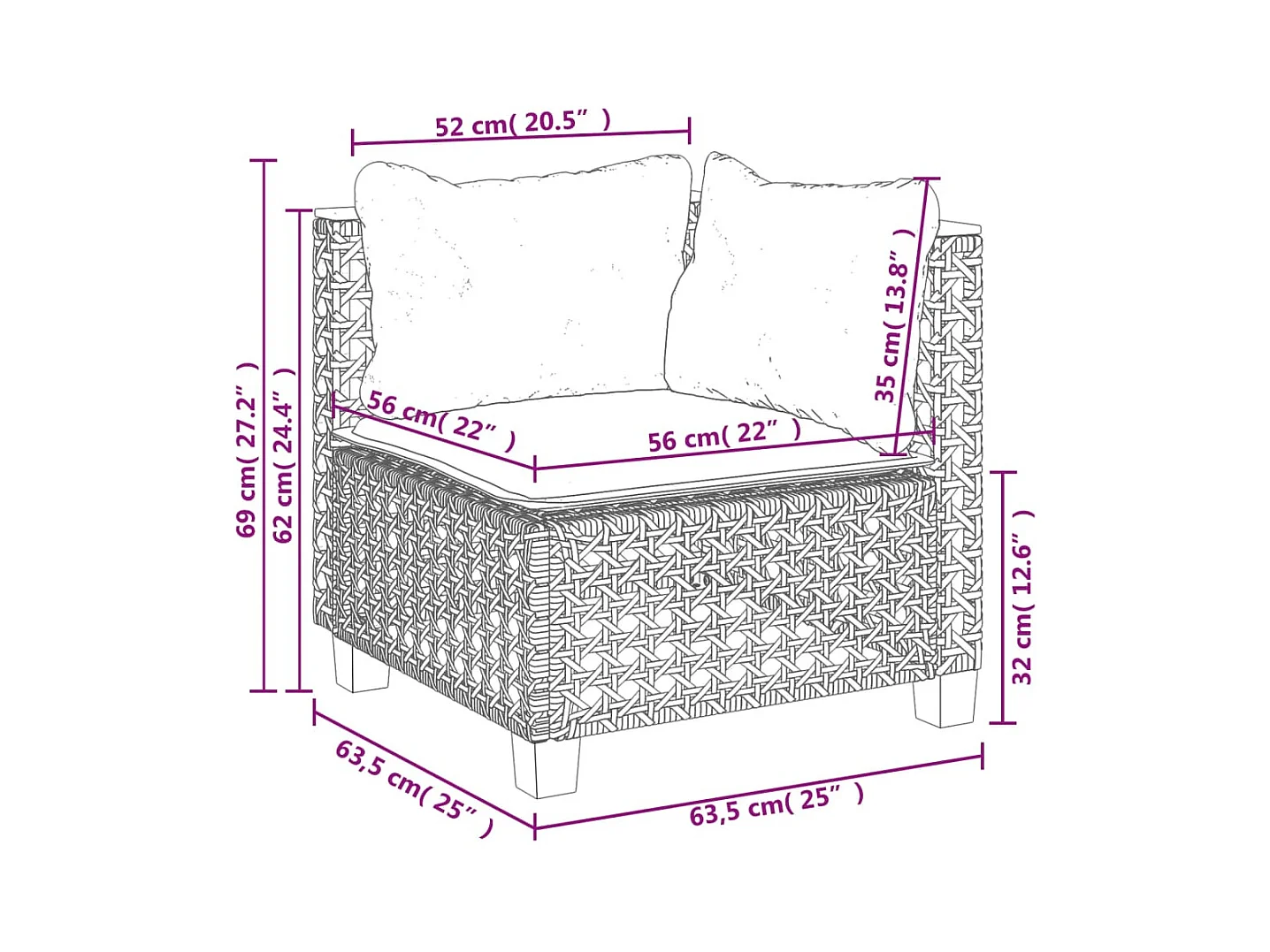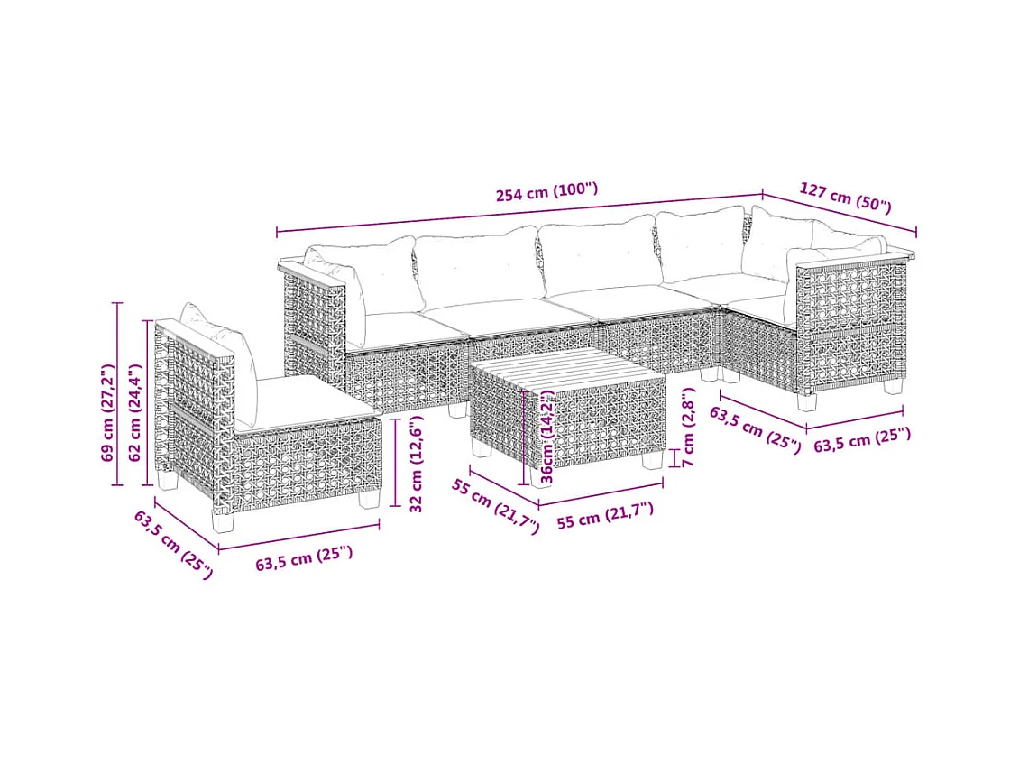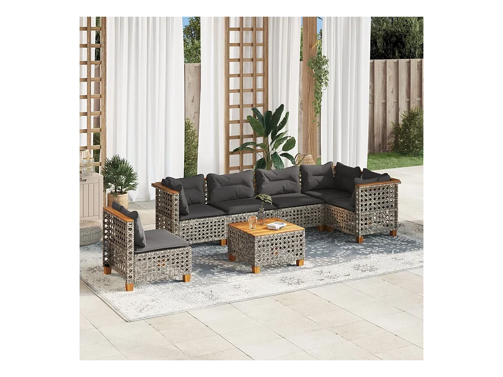 Set de sofás de jardín 7 piezas con cojines ratán sintético gris