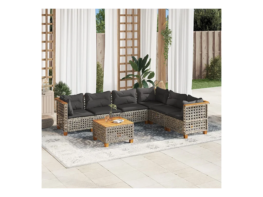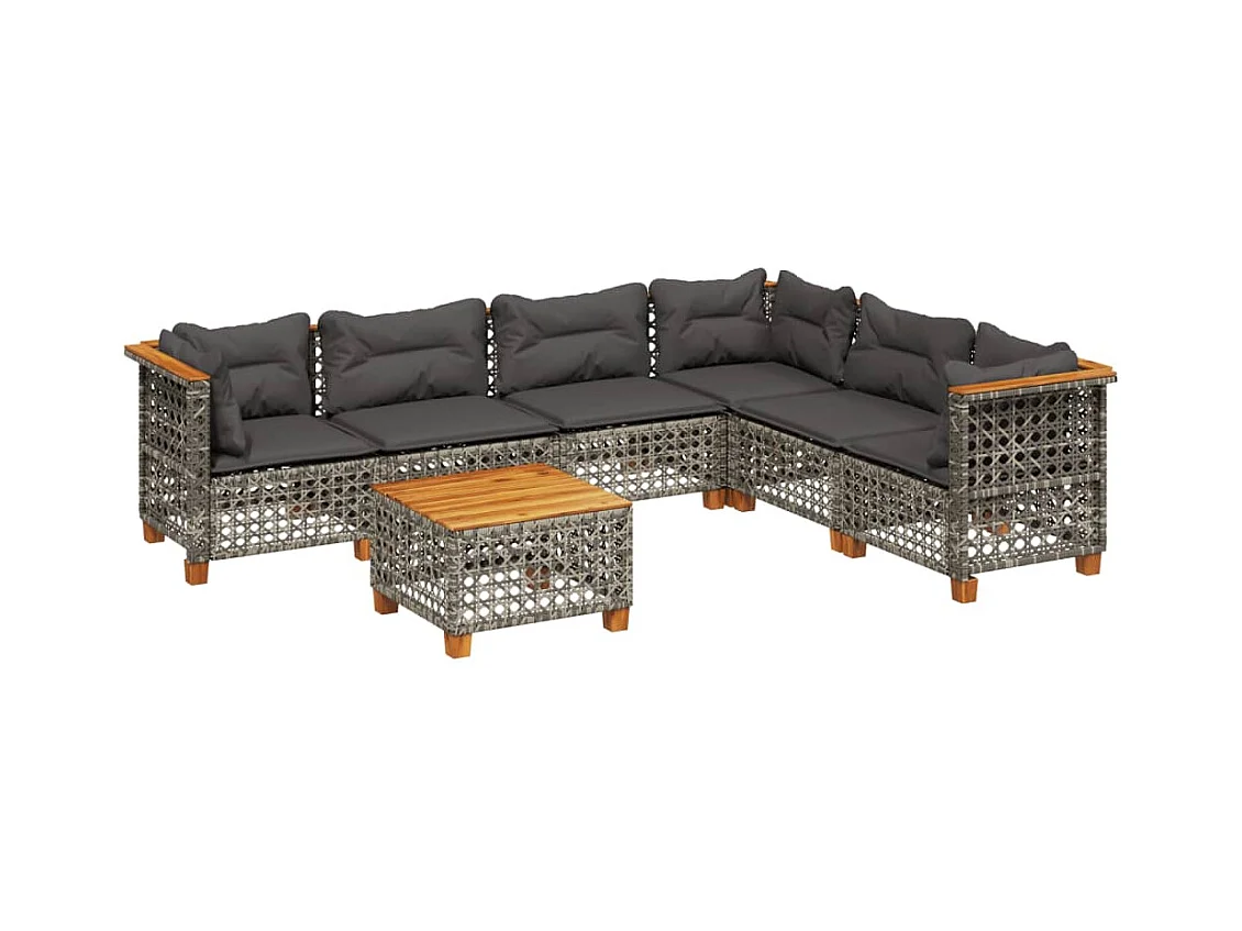 Set de sofás de jardín 8 piezas y cojines ratán sintético gris