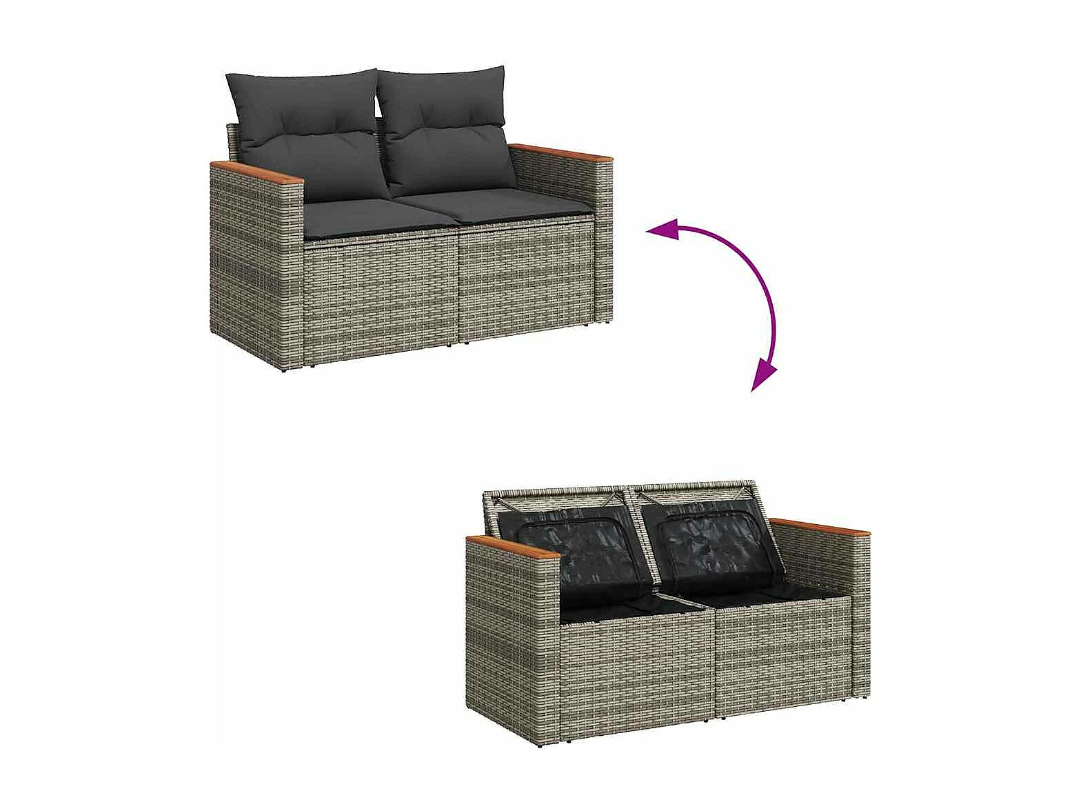Set de sofás de jardín 7 piezas con cojines ratán sintético gris