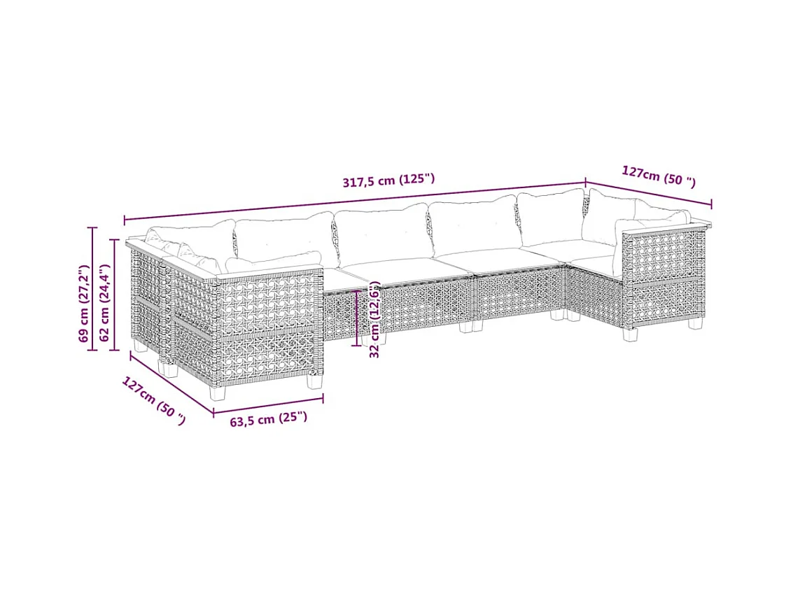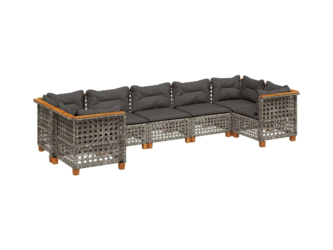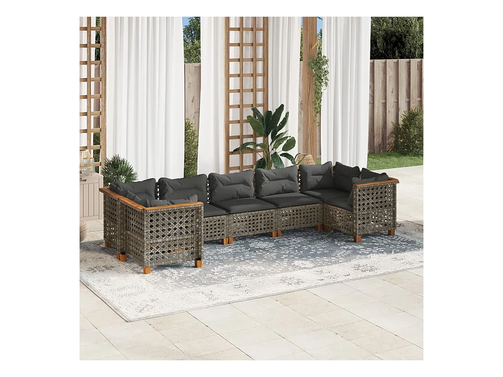 Set de sofás de jardín 7 piezas con cojines ratán sintético gris