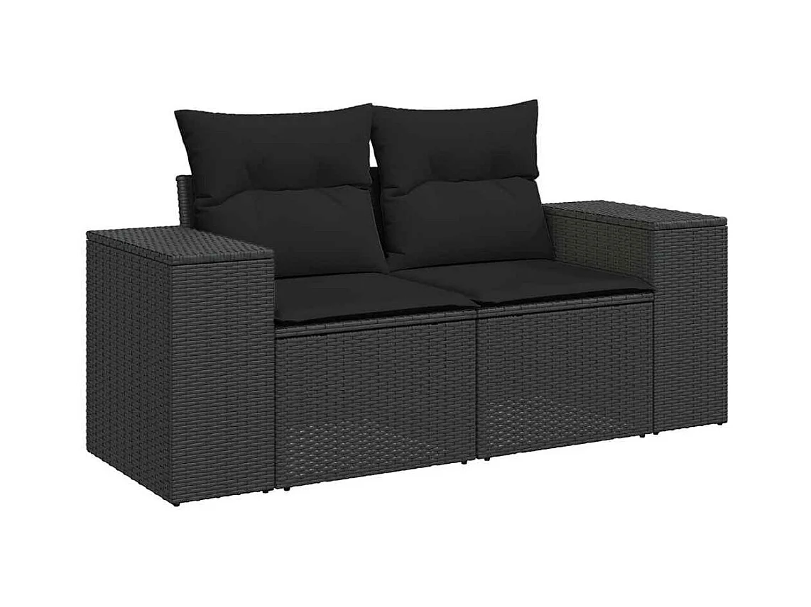 Set de sofás de jardín 7 piezas con cojines ratán sintético negro