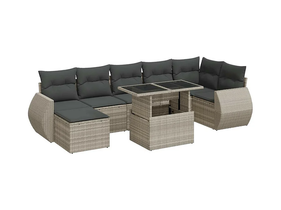 Set de sofás de jardín 8 piezas y cojines ratán sintético gris