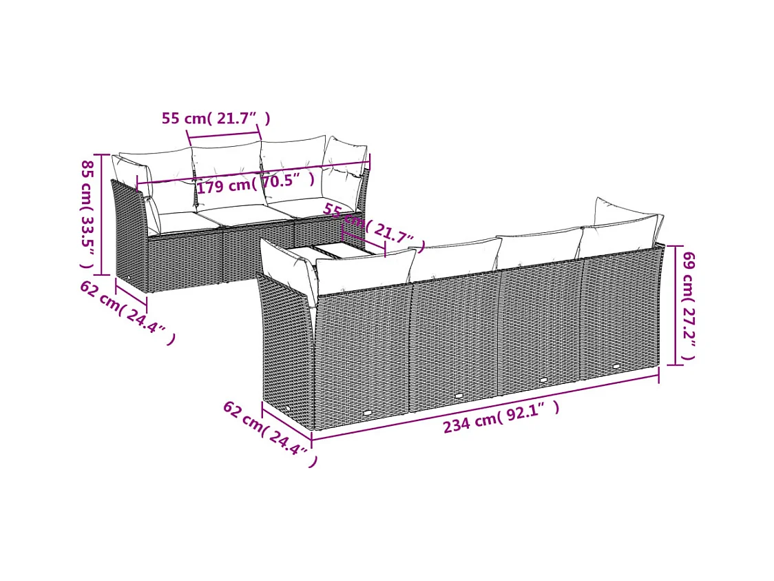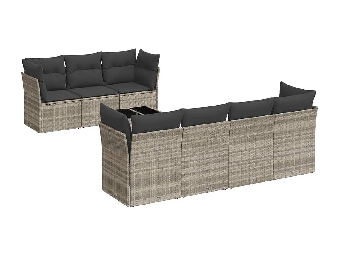 Set de sofás de jardín 8 piezas y cojines ratán sintético gris