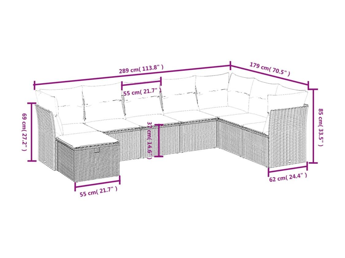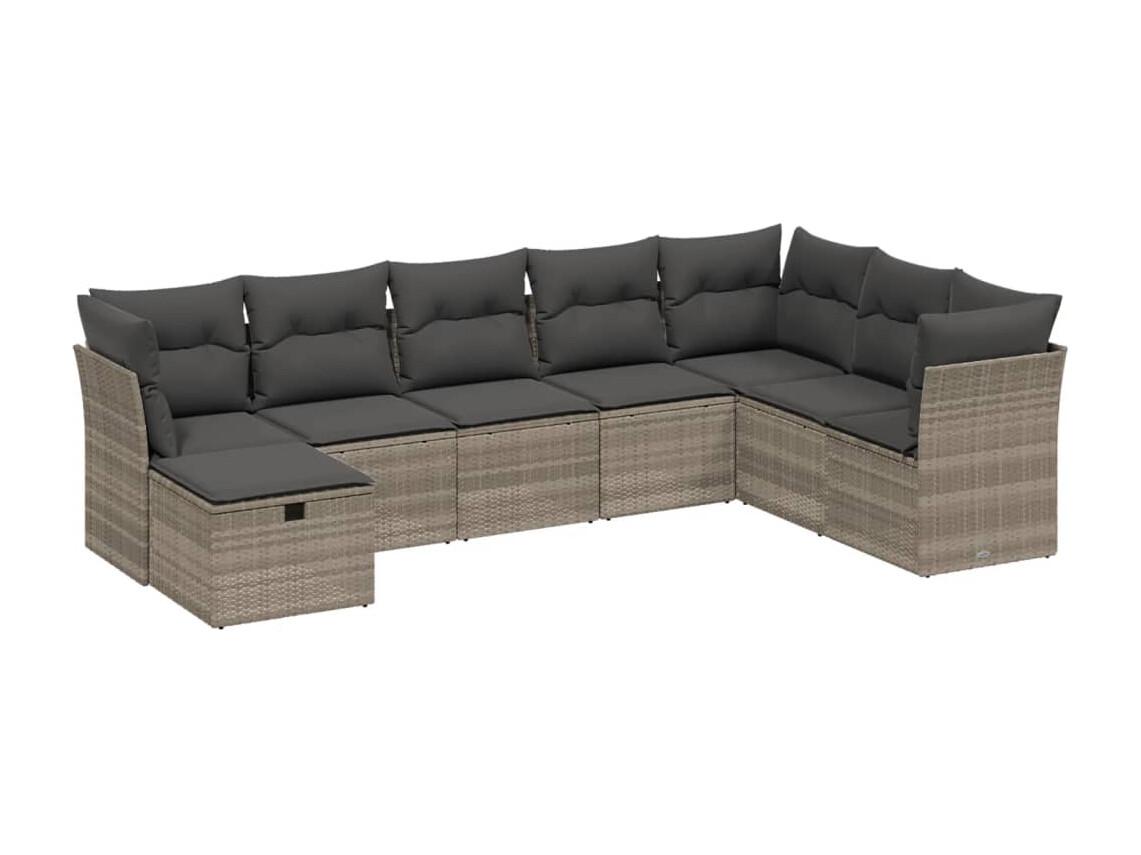 Set de sofás de jardín 8 piezas y cojines ratán sintético gris