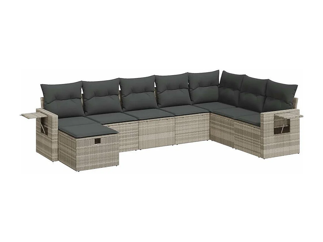 Set de sofás de jardín 8 piezas y cojines ratán sintético gris