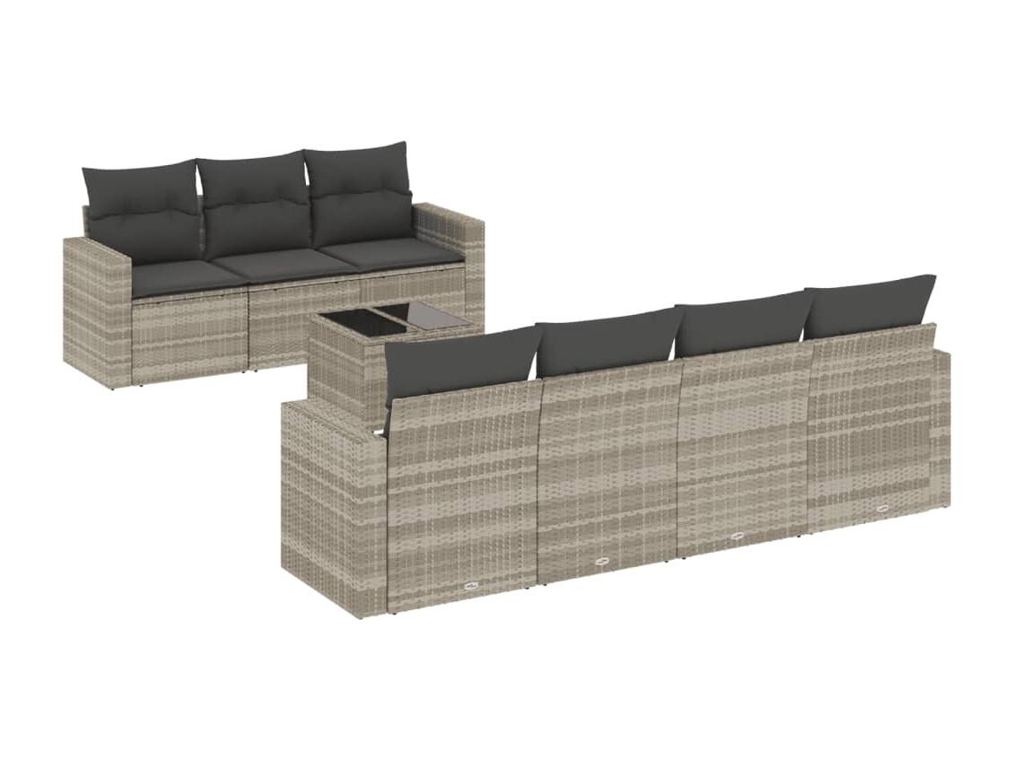 Set de sofás de jardín 7 piezas con cojines ratán PE gris claro