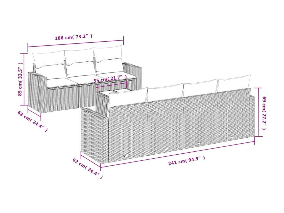 Set de sofás de jardín 8 piezas y cojines ratán sintético gris