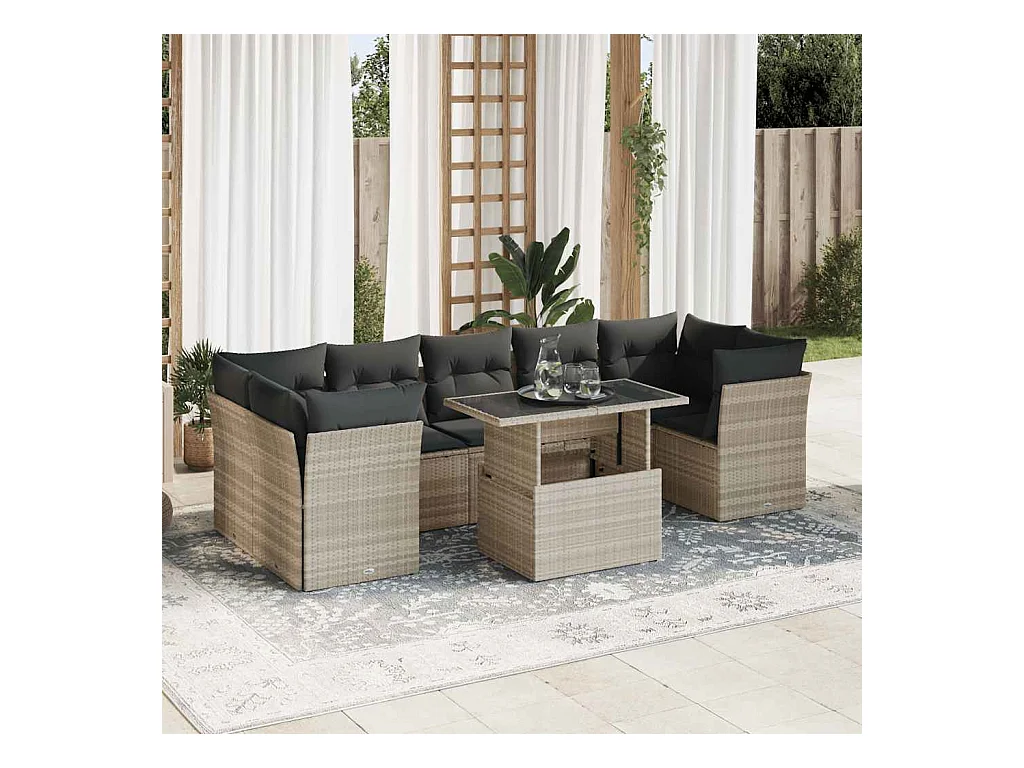 Set de sofás de jardín 8 piezas y cojines ratán sintético gris