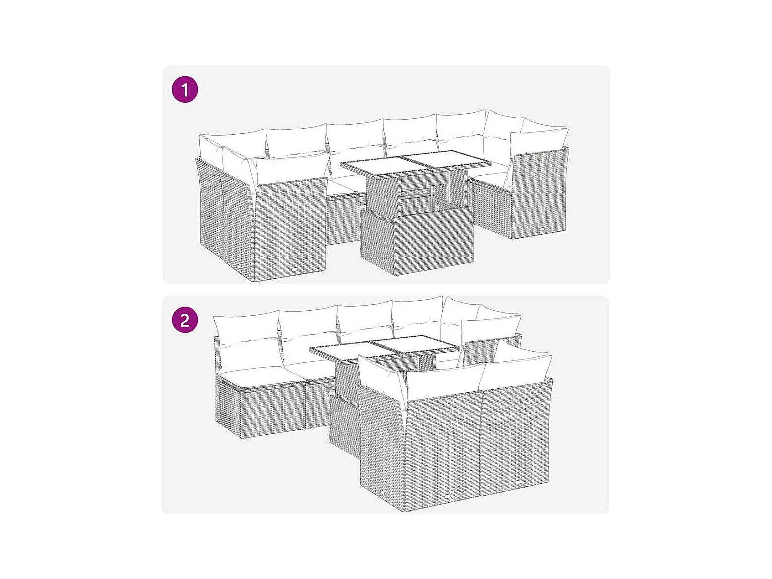 Set de sofás de jardín y cojines 8 piezas ratán sintético gris