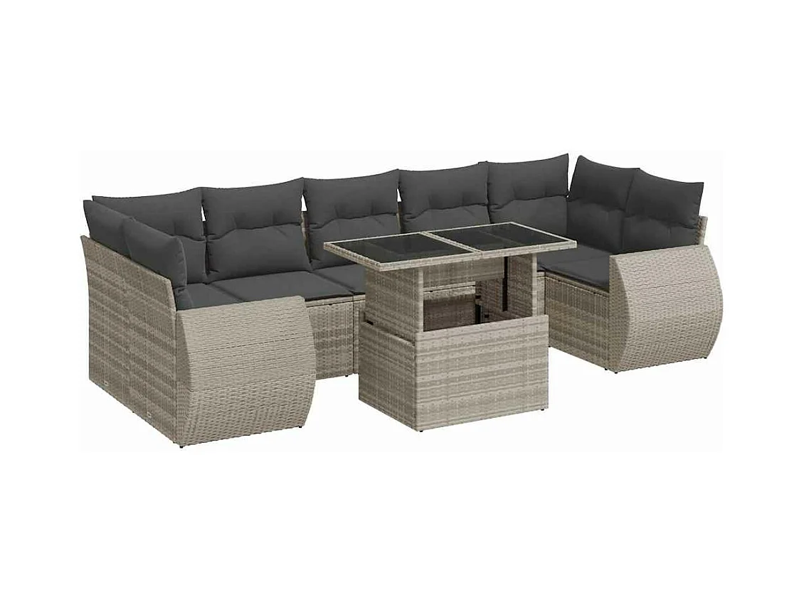 Set de sofás de jardín 8 piezas y cojines ratán sintético gris
