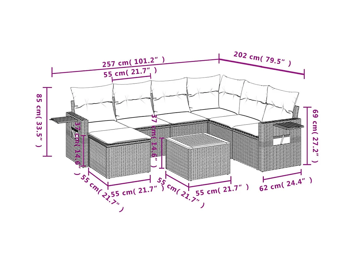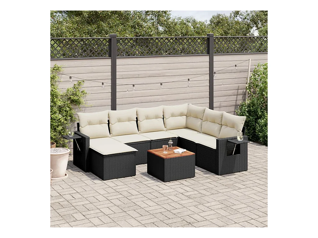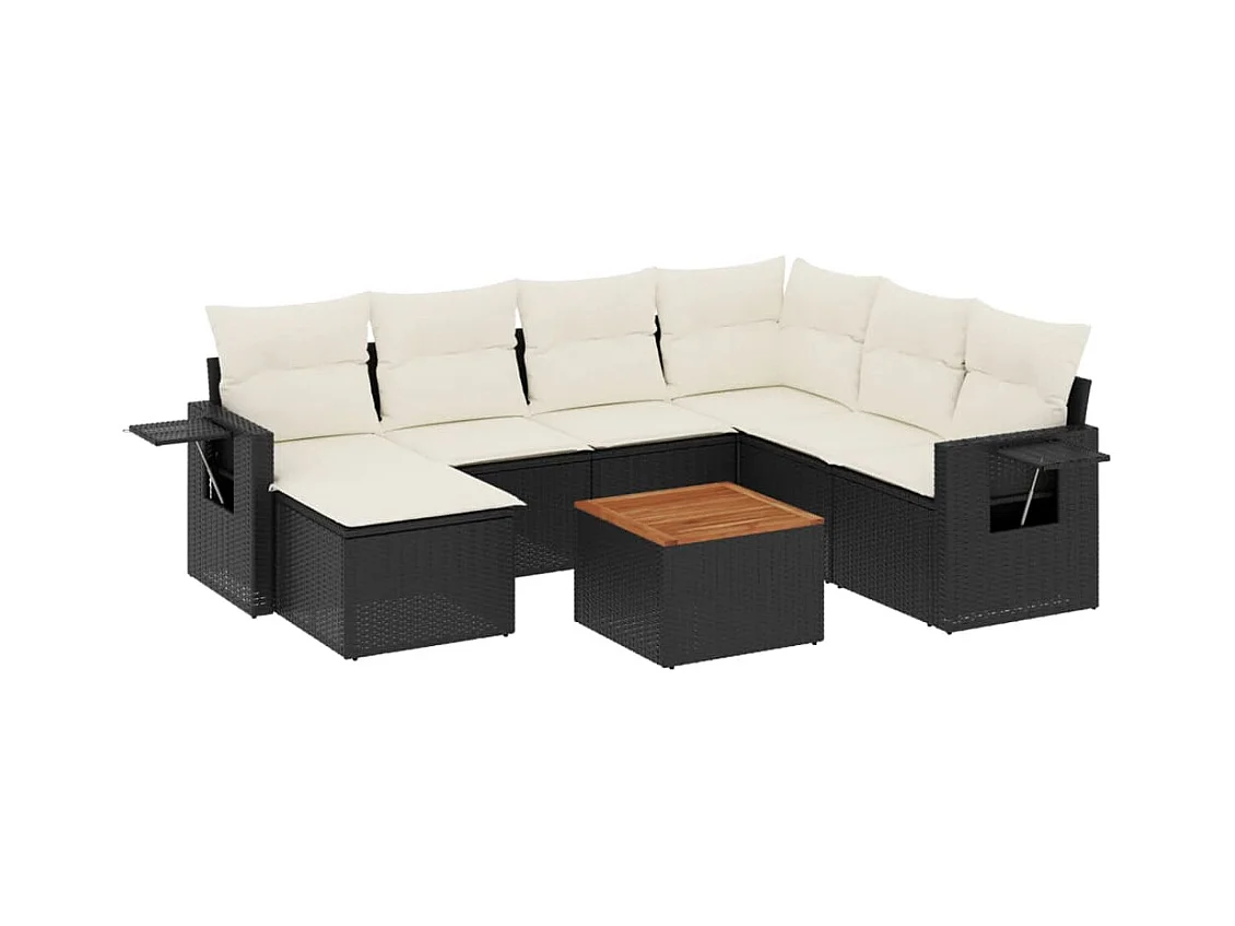 Set de sofás de jardín 8 piezas y cojines ratán sintético negro