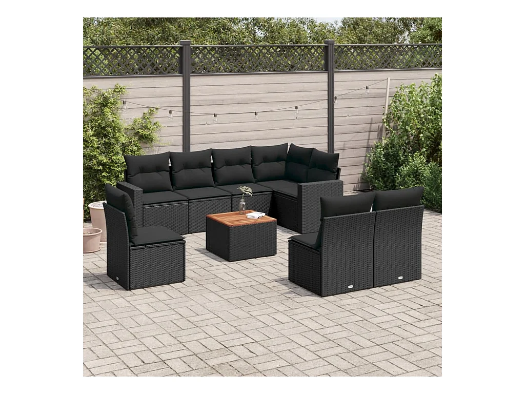 Set de sofás de jardín 8 piezas y cojines ratán sintético negro