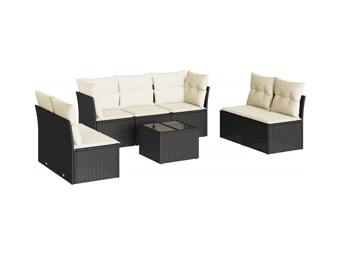 Set de sofás de jardín 8 piezas y cojines ratán sintético negro