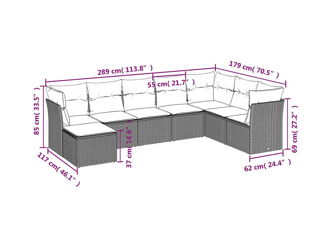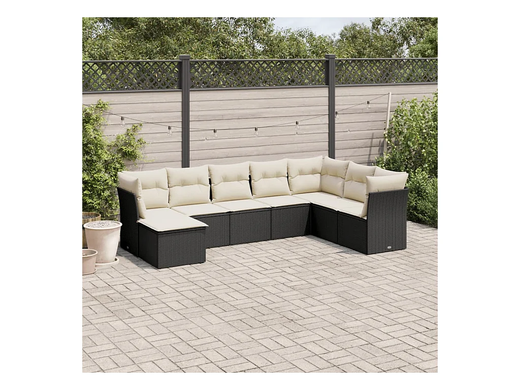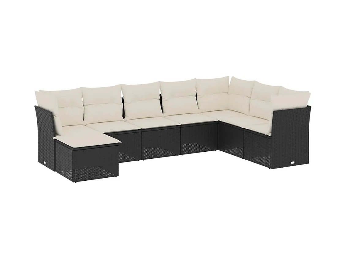 Set de sofás de jardín 8 piezas y cojines ratán sintético negro