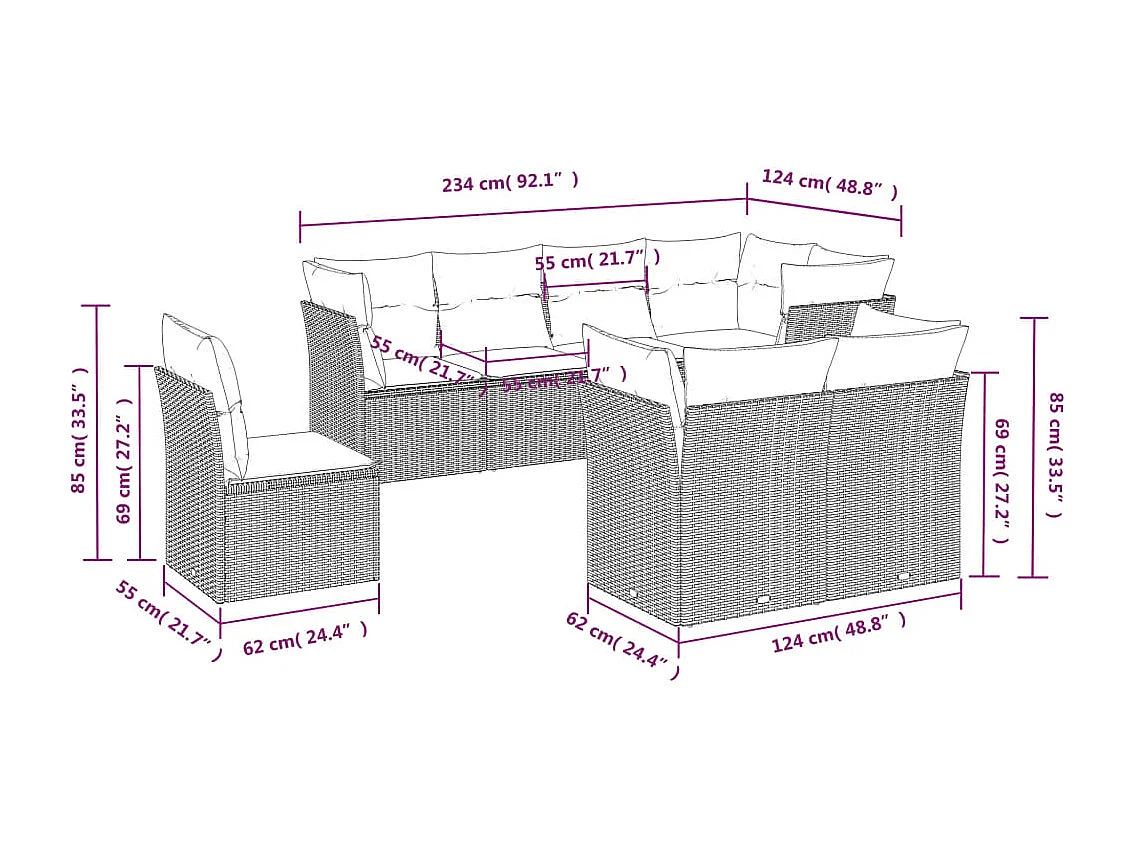 Set de sofás de jardín 8 pzas y cojines ratán sintético gris