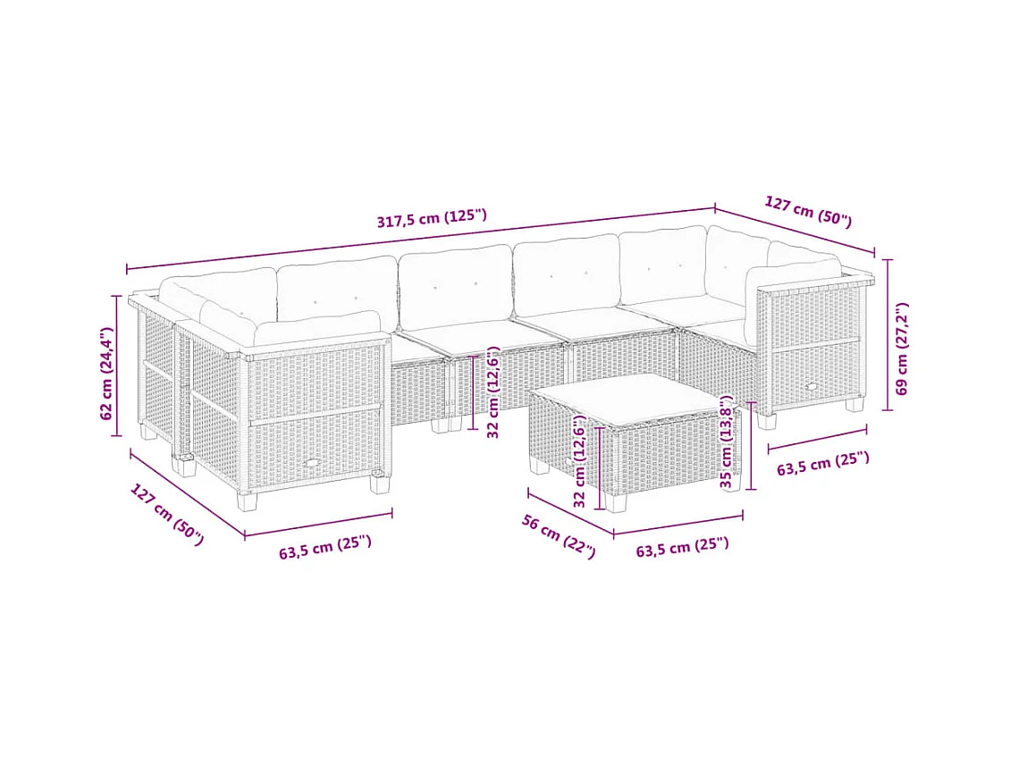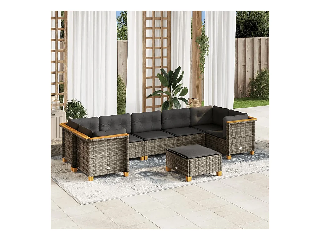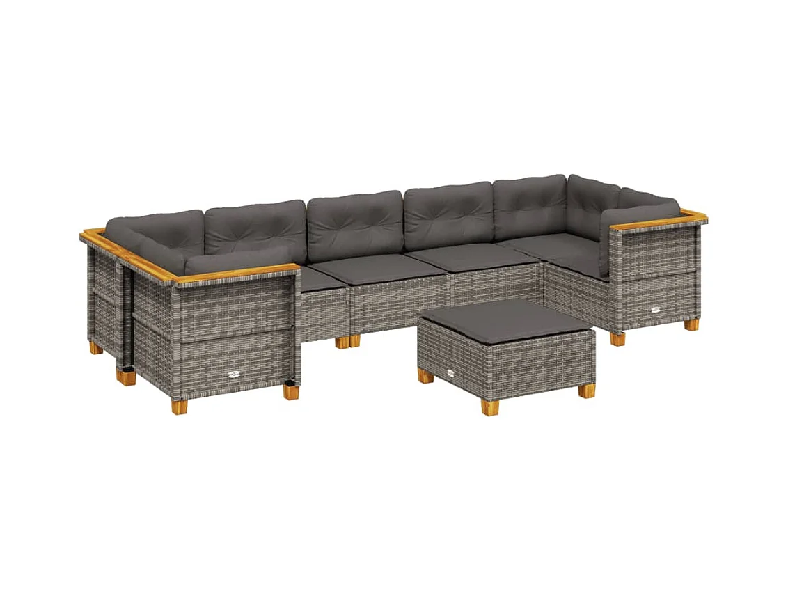 Set de sofás de jardín y cojines 8 piezas ratán sintético gris