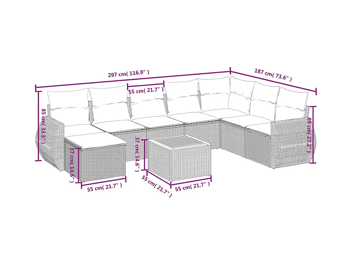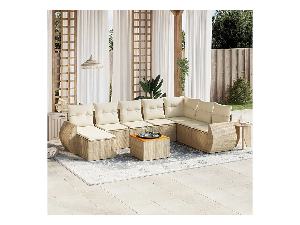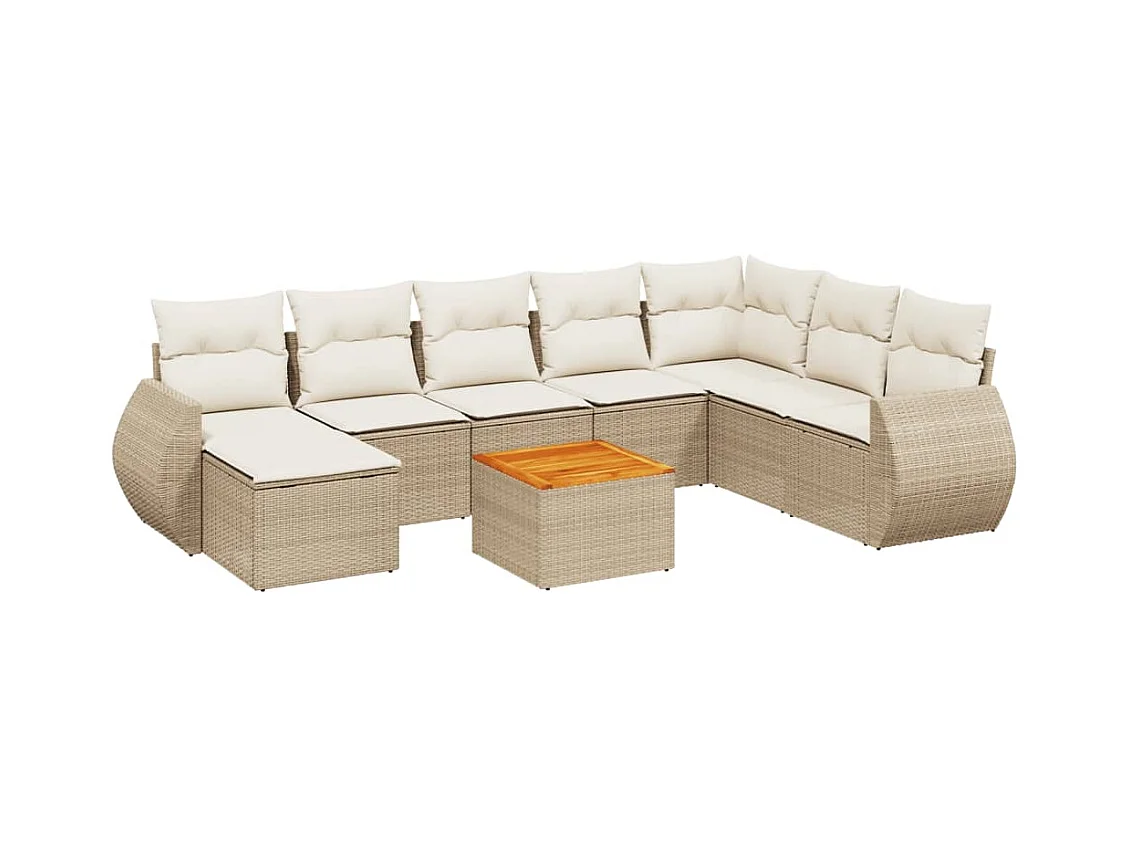 Set de sofás de jardín 9 piezas con cojines ratán sintético beige