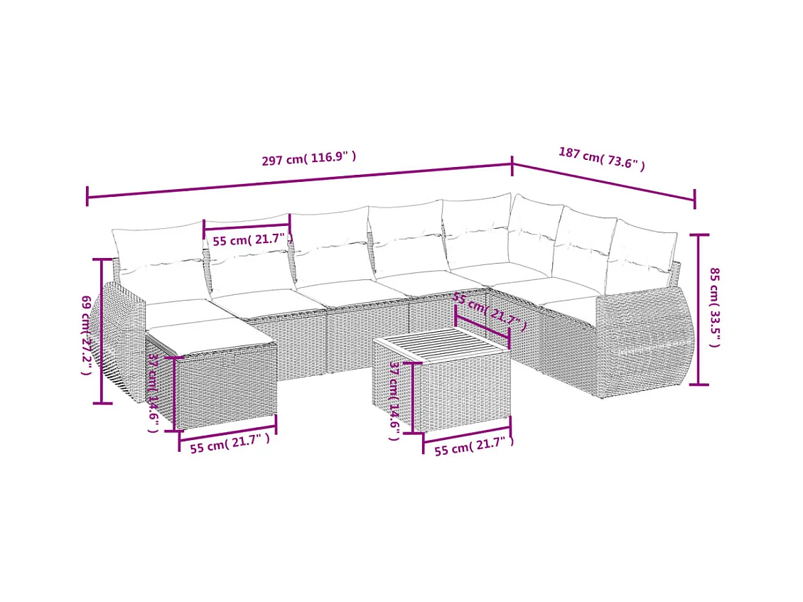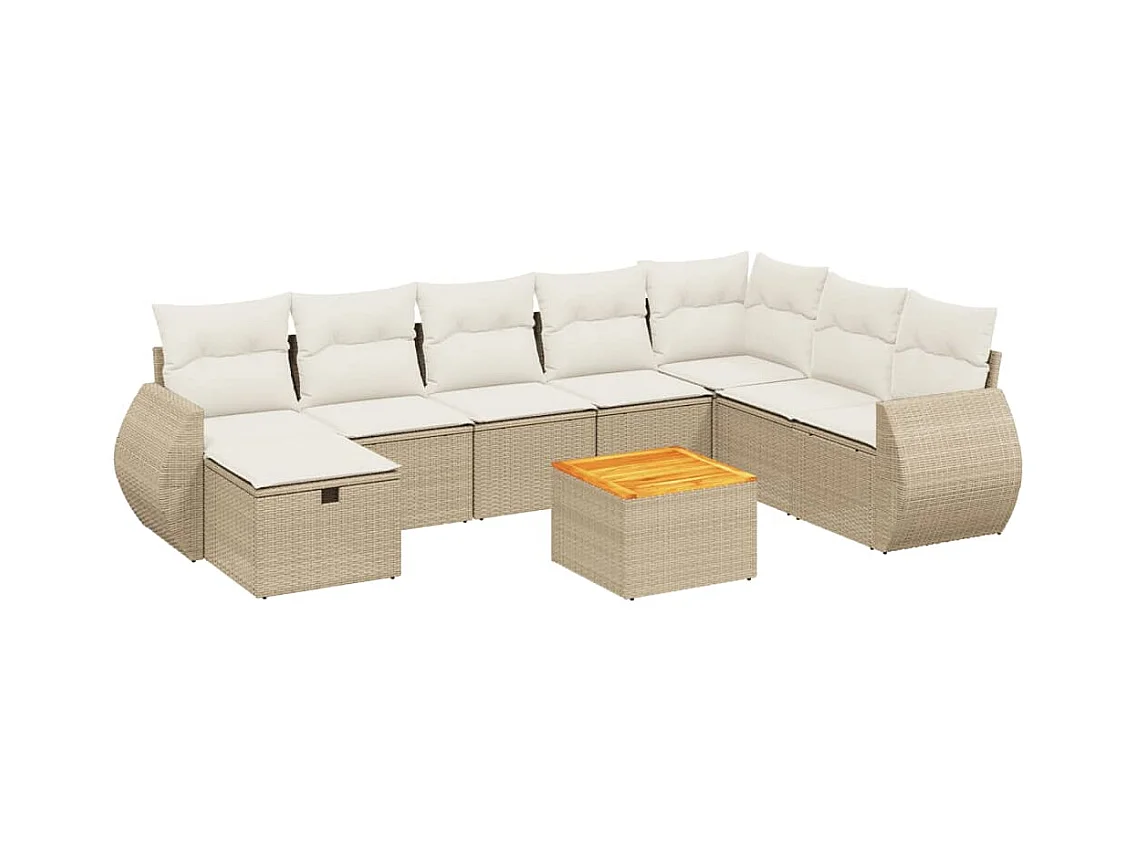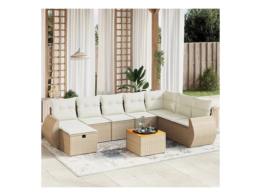 Set de sofás de jardín 9 piezas con cojines ratán sintético beige