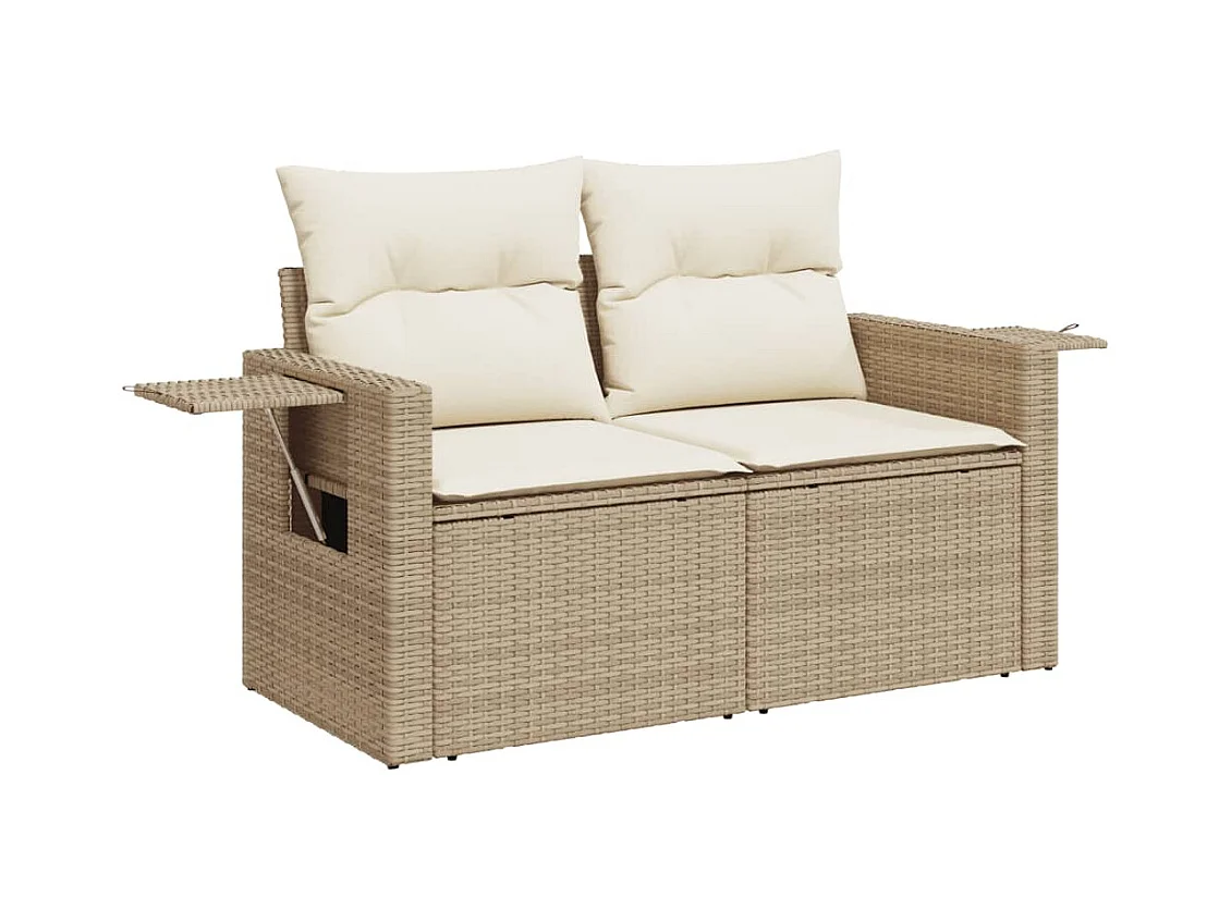 Set de sofás de jardín 9 piezas con cojines ratán sintético beige