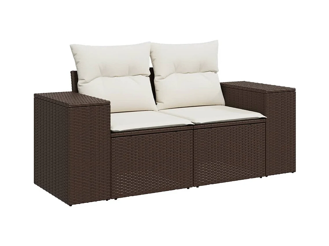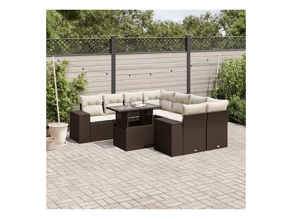 Set de sofás de jardín 9 piezas y cojines ratán sintético marrón