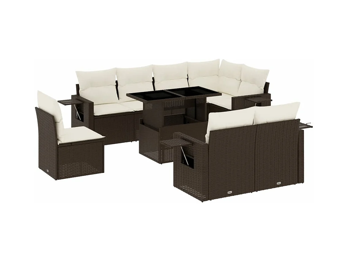 Set de sofás de jardín 9 piezas y cojines ratán sintético marrón