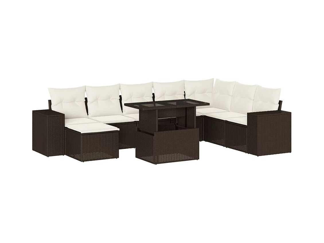 Set de sofás de jardín 9 piezas y cojines ratán sintético marrón