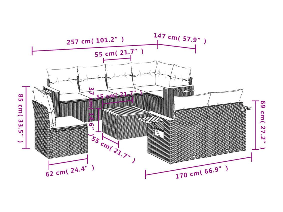 Set de sofás de jardín 9 pzas con cojines ratán sintético beige