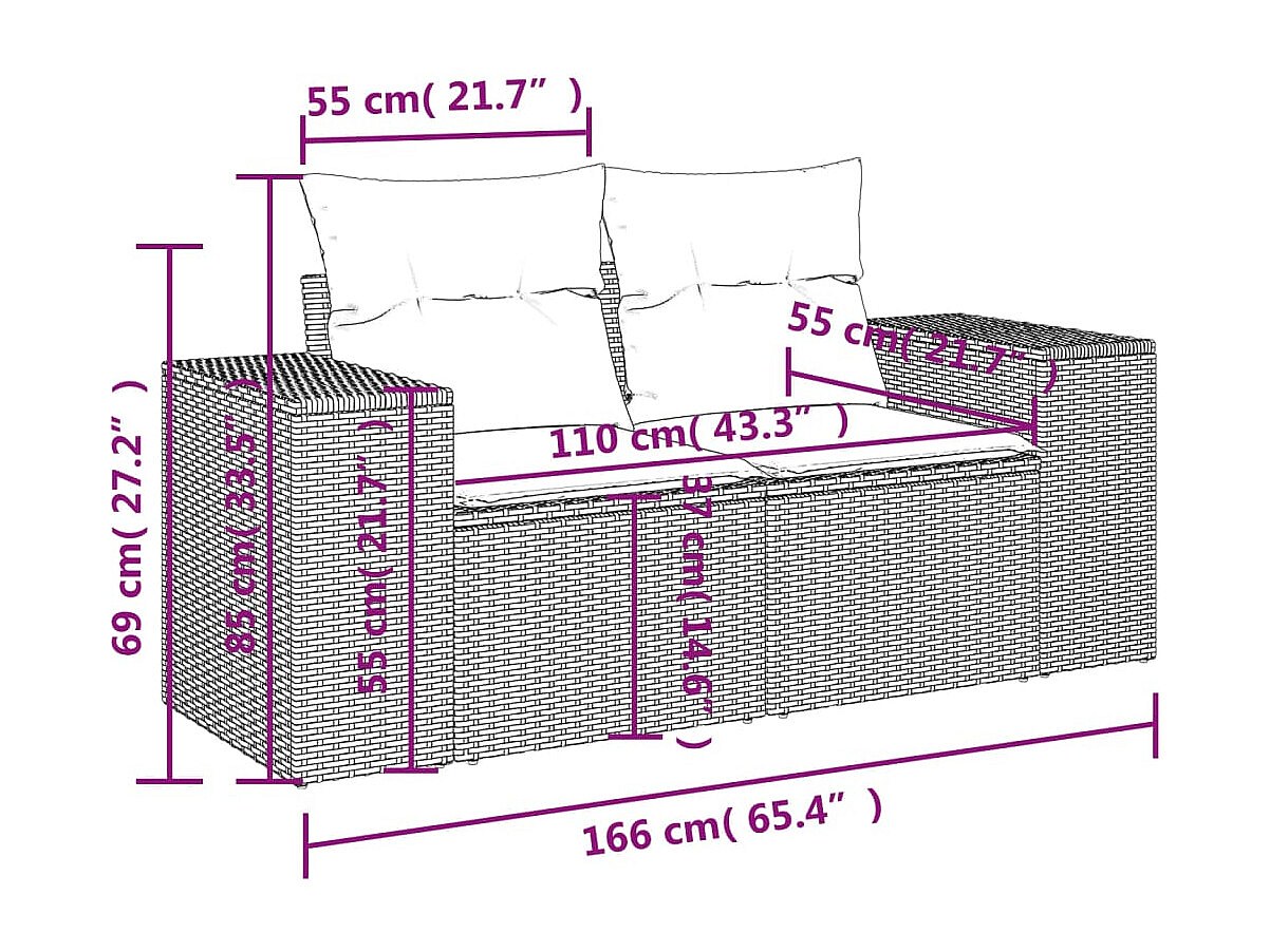 Set de sofás de jardín 9 pzas con cojines ratán sintético beige