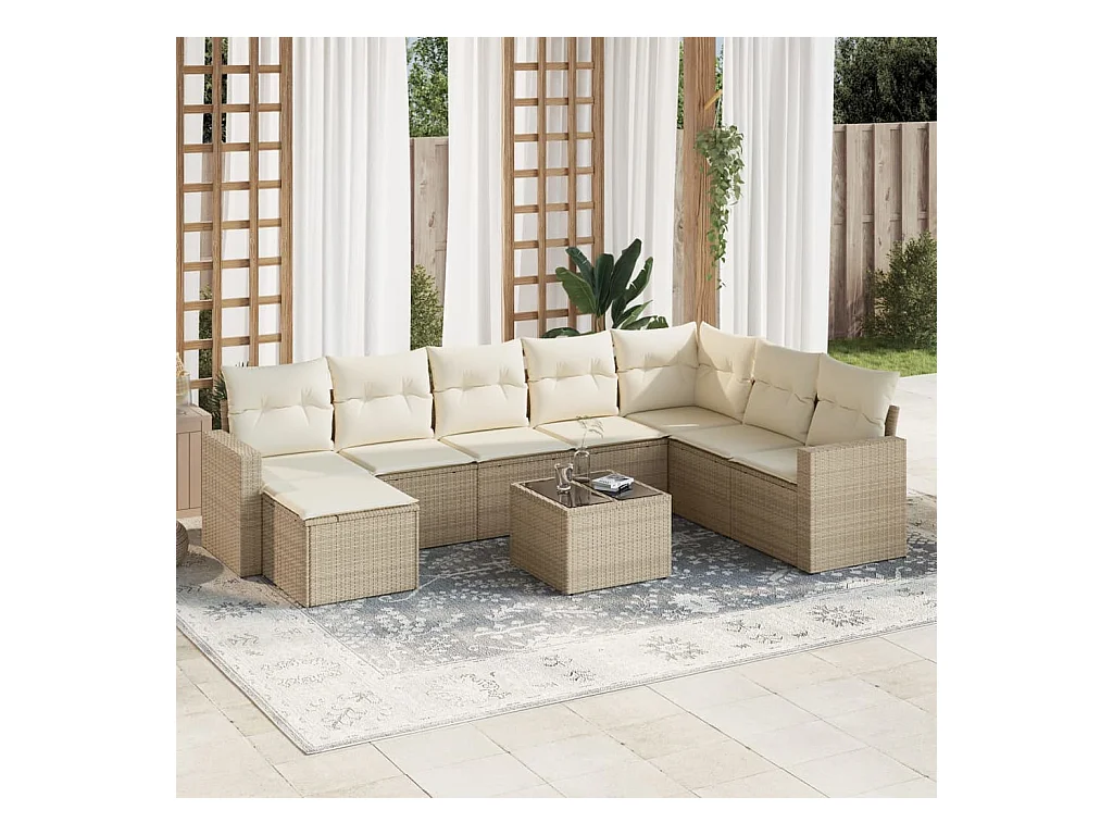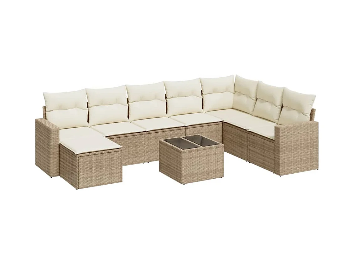 Muebles de jardín con cojines 9 piezas resina tejida beige