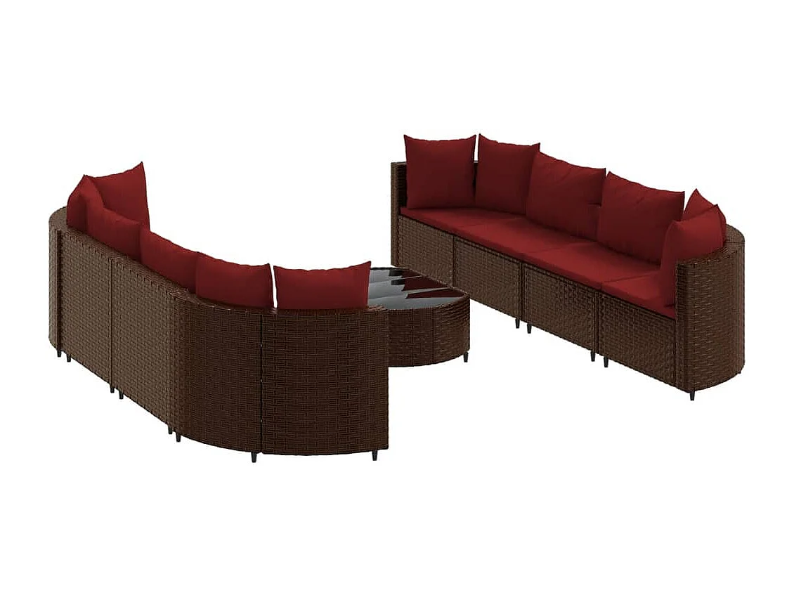 Set de sofás de jardín 9 pzas y cojines ratán sintético marrón