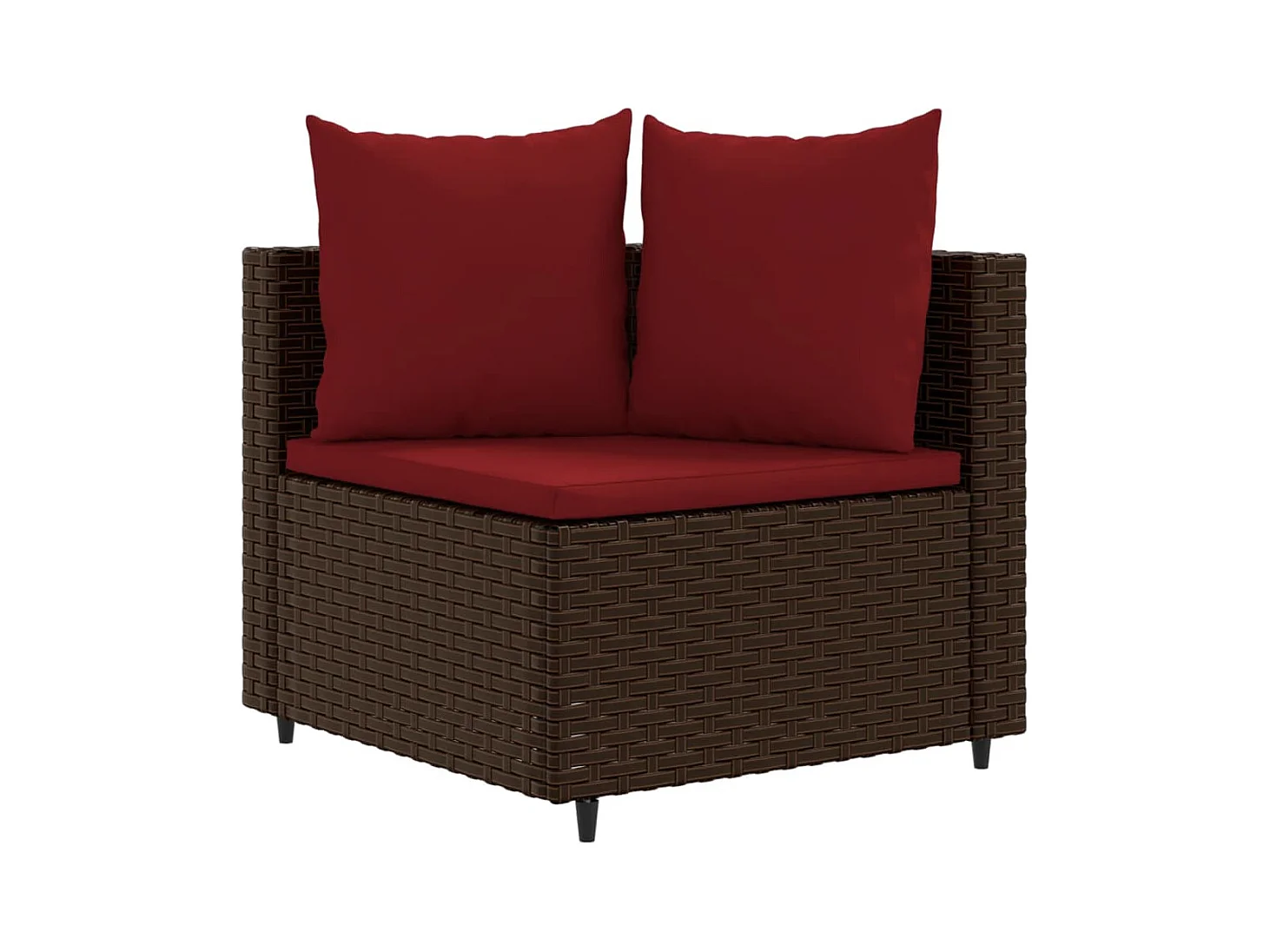 Set muebles de jardín 6 piezas y cojines ratán sintético marrón