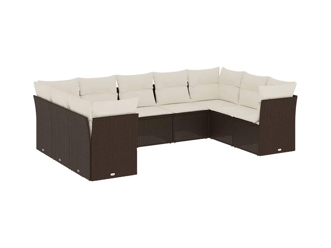 Set de sofás de jardín 9 pzas y cojines ratán sintético marrón